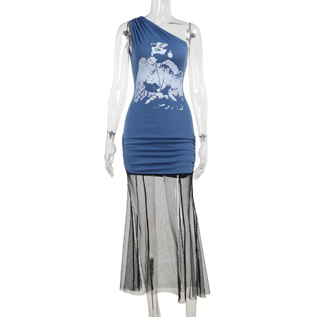It’s a one shoulder dress . It’s very stretchy and light weight. Great for the spring and summer season.